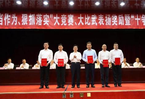 2020年7月31日上午,全縣“改革攻堅(jiān)、狠抓落實(shí)”大競(jìng)賽、大比武表彰獎(jiǎng)勵(lì)大會(huì)在利津縣文化中心隆重召開(kāi)。市委副書(shū)記陳必昌出席會(huì)議并講話,縣委副書(shū)記、縣長(zhǎng)張曉彬主持會(huì)議,縣委副書(shū)記、利津經(jīng)濟(jì)開(kāi)發(fā)區(qū)黨工委書(shū)記許明德宣讀政府表彰表?yè)P(yáng)通報(bào),政府相關(guān)部門(mén)領(lǐng)導(dǎo)及企事業(yè)單位負(fù)責(zé)人參加此次會(huì)議。