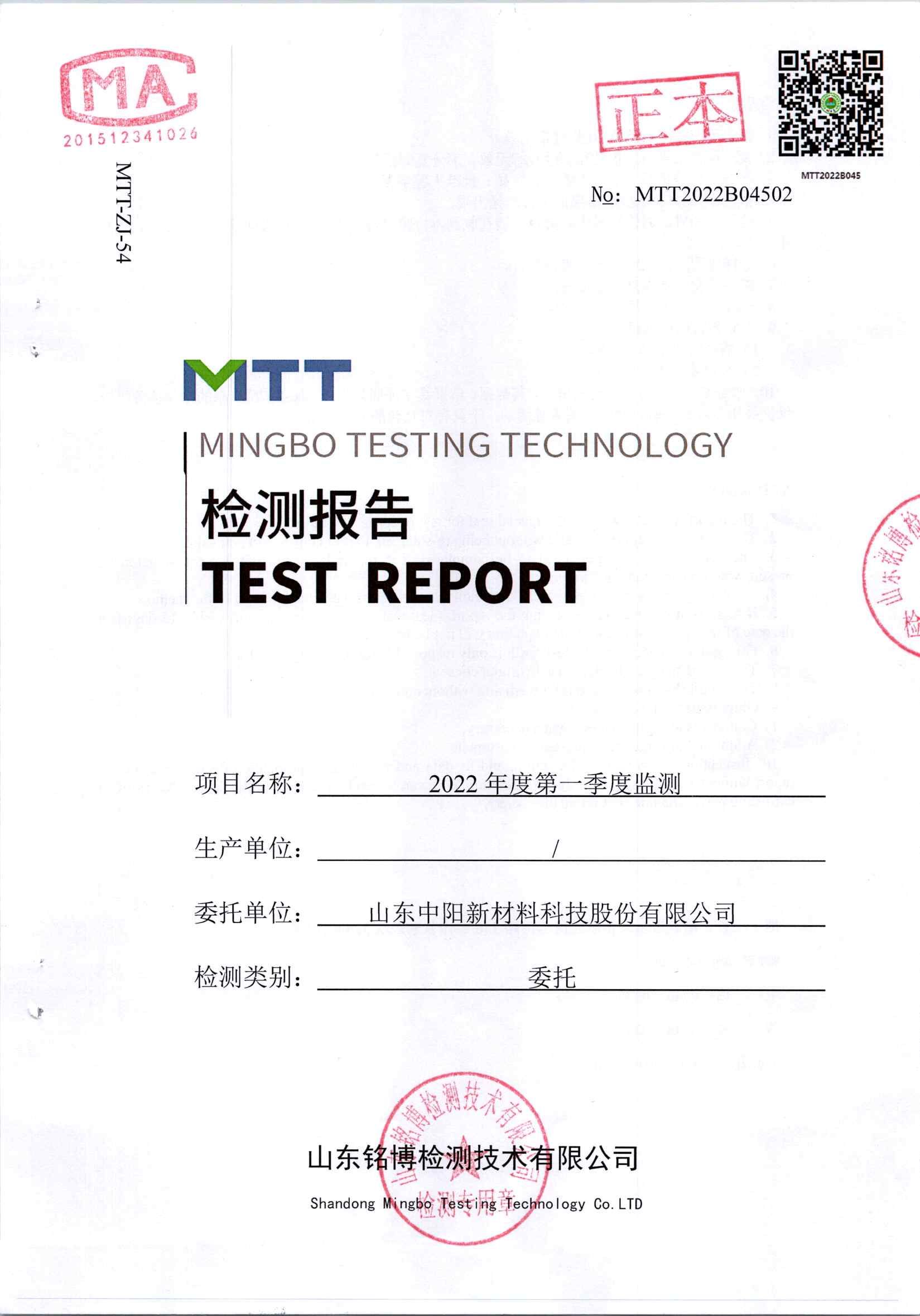 2022年第一季度檢測報告(循環(huán)水水質(zhì)、噪音)